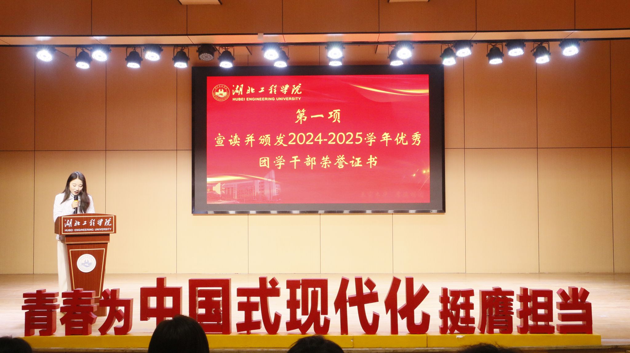 为表彰先进,凝聚力量,开启团学工作新篇章,10月21日,土木工程学院于教一报告厅举行“逐梦新程 砼赴未来”2025年新任团委学生干部见面会暨优秀团学干部表彰大会。学院党委副书记魏佩老师、全体辅导员老师、历任学生干部代表以及全体新任学生干部共同出席了本次大会。会议由学院辅导员汪颖老师主持。