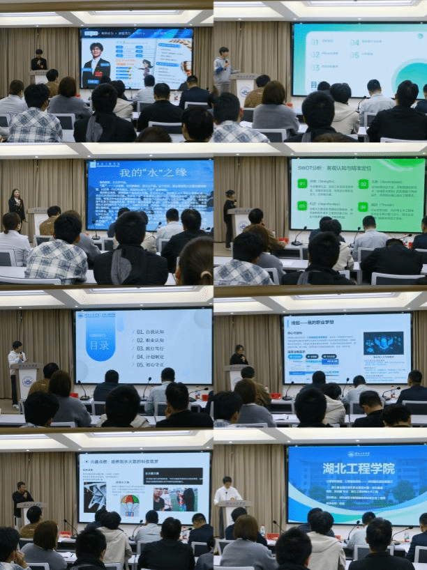 经过前期材料提交和院内初审,最终共有八名同学进入汇报展示环节。首先,就业赛道的四名选手依次登台,他们结合土木专业特色,立足行业发展前沿,展现了清晰的职业目标和扎实的综合素养;随后,成长赛道的四名选手围绕自我认知、职业环境分析、职业目标定位、评估调整以及行动计划等多个维度,全面而深入地阐述了各自的职业规划蓝图,聚焦个人能力提升与未来发展规划,呈现新时代土木学子的成长路径与奋斗姿态。