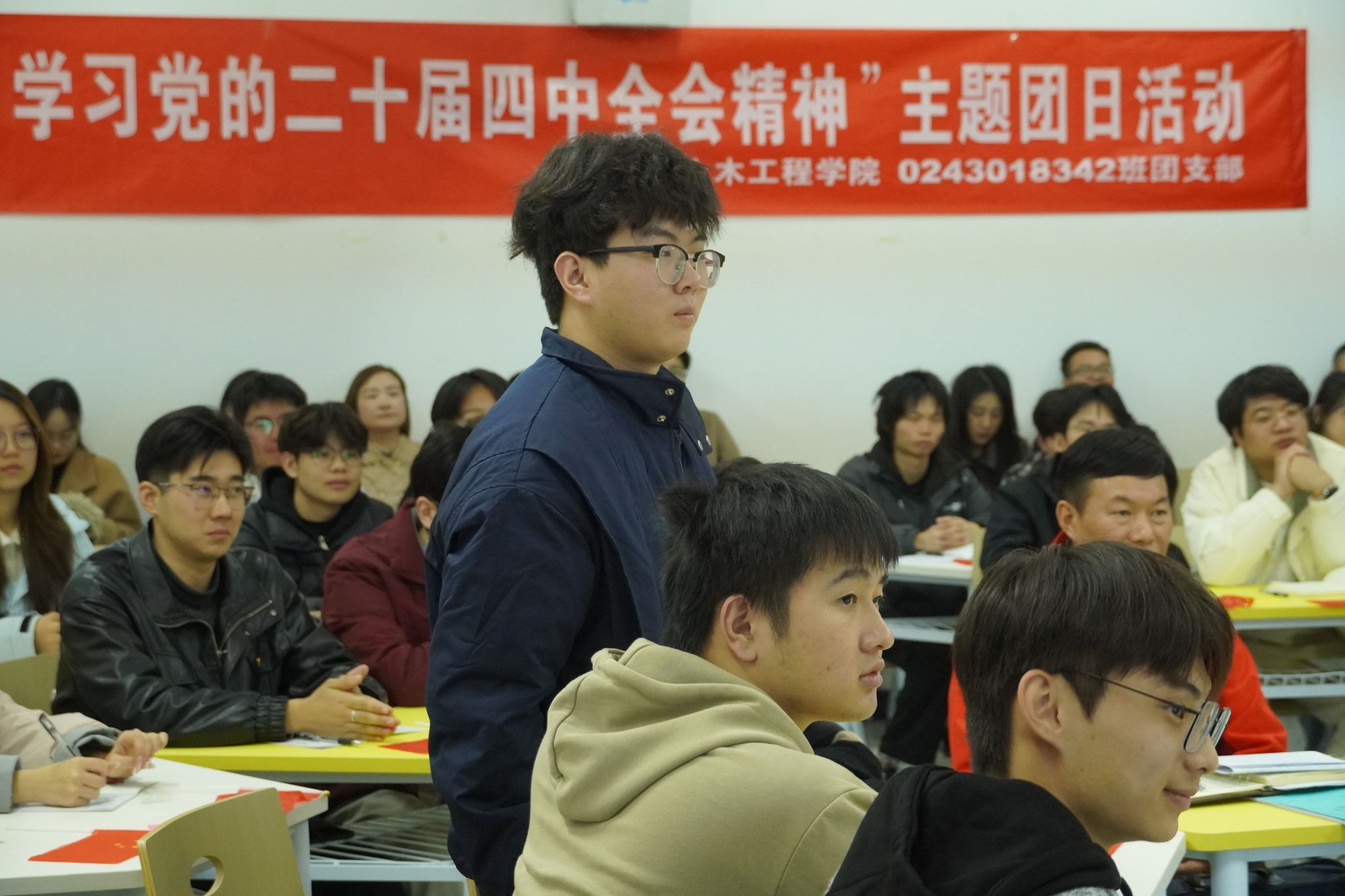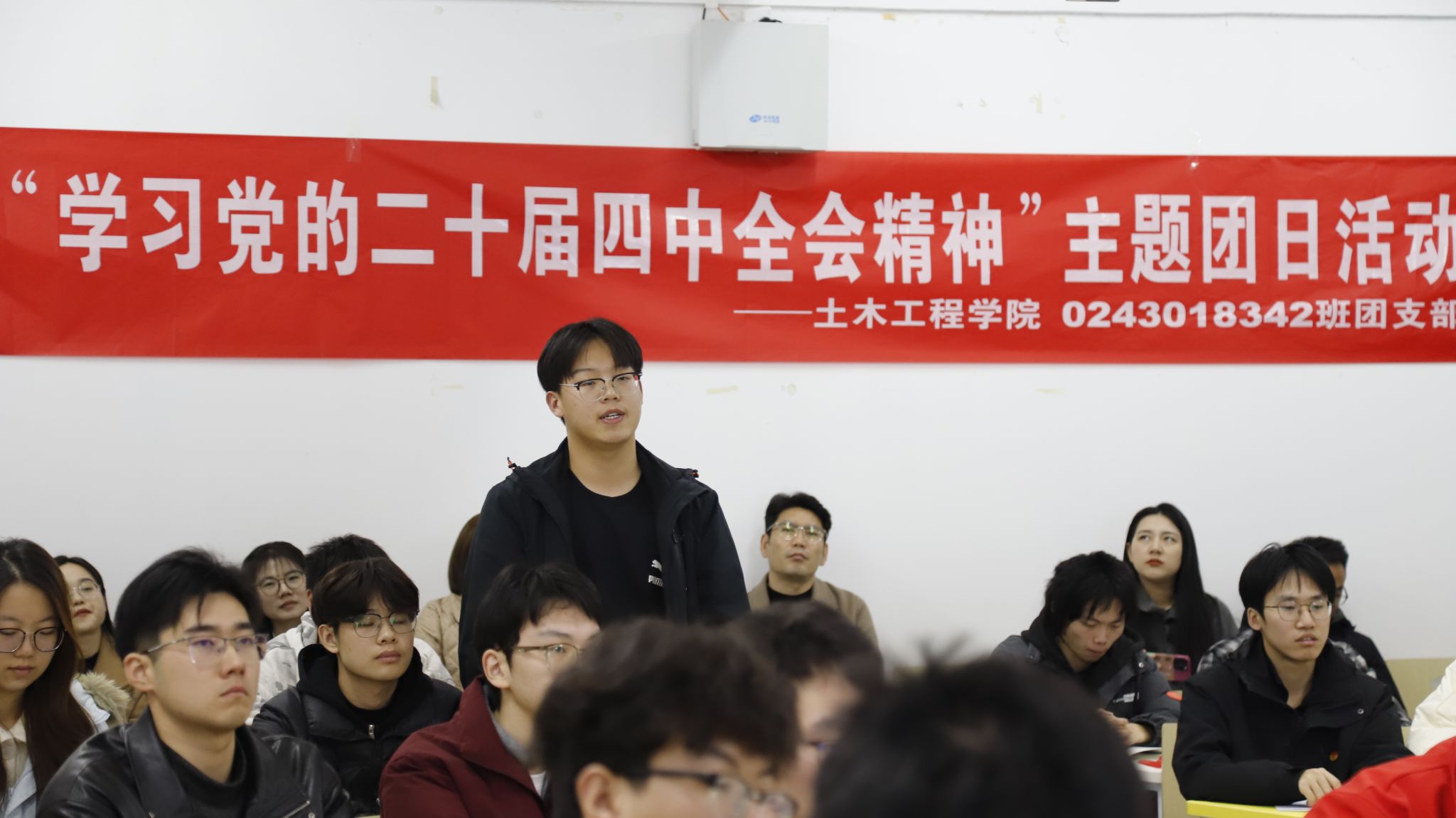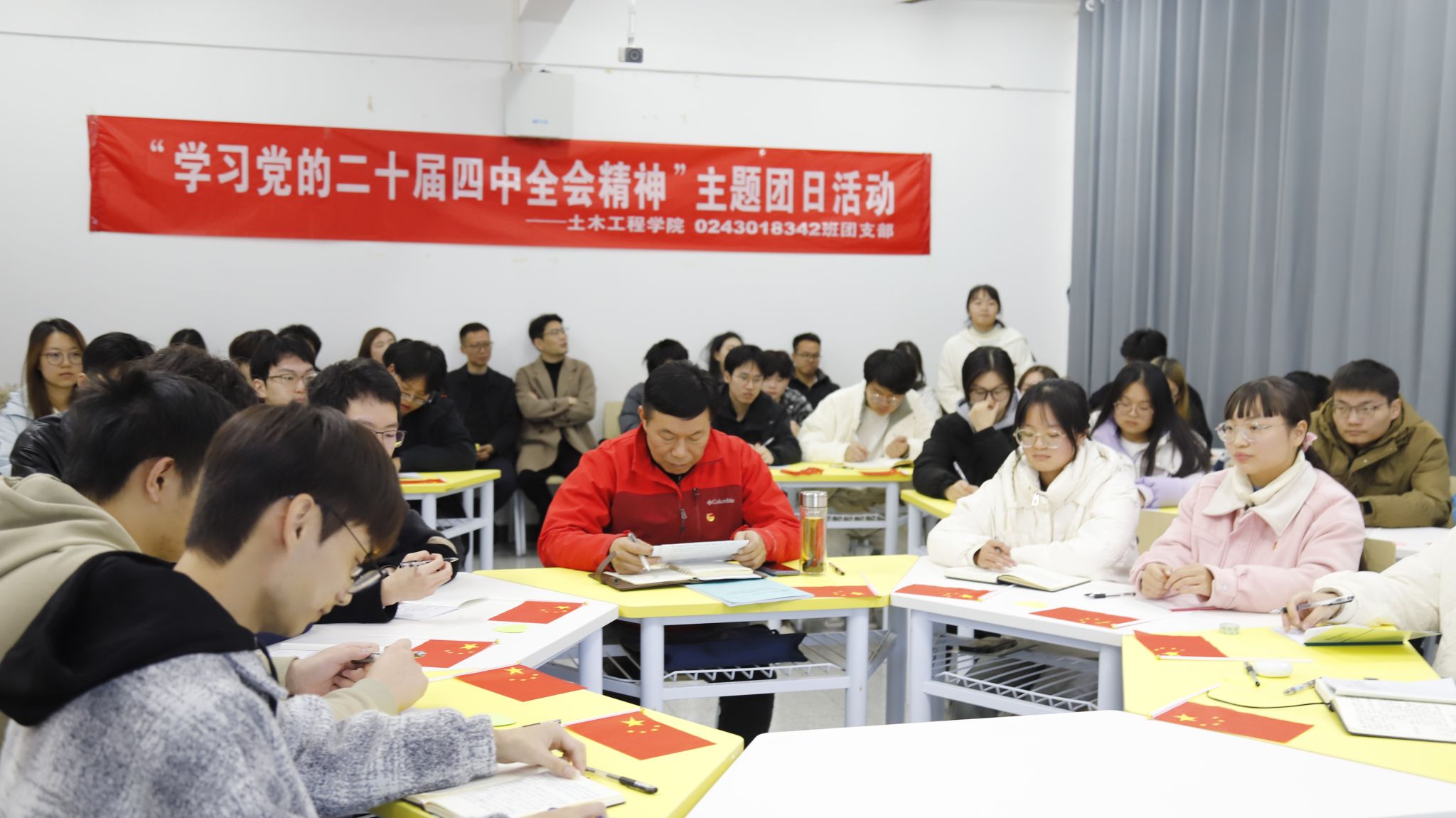 为深入学习贯彻党的二十届四中全会精神,教育引导广大团员青年增强团员意识,2025年11月19日,土木工程学院0243018342班团支部在天工楼312教室,开展了一场别开生面的主题团日活动,活动荣幸邀请到学校党委副书记陈伟老师出席指导,校团委、土木工程学院主要负责人共同参与。
