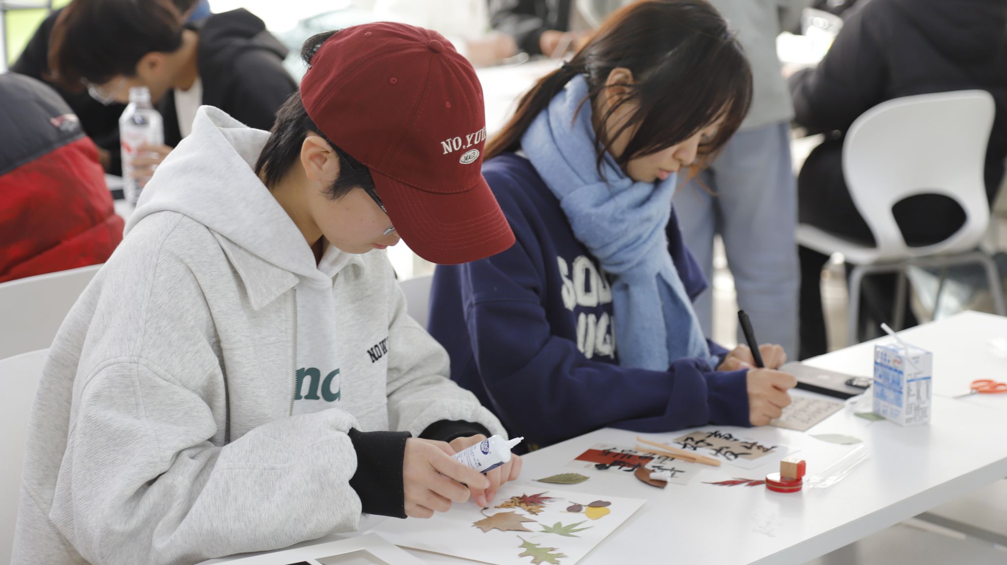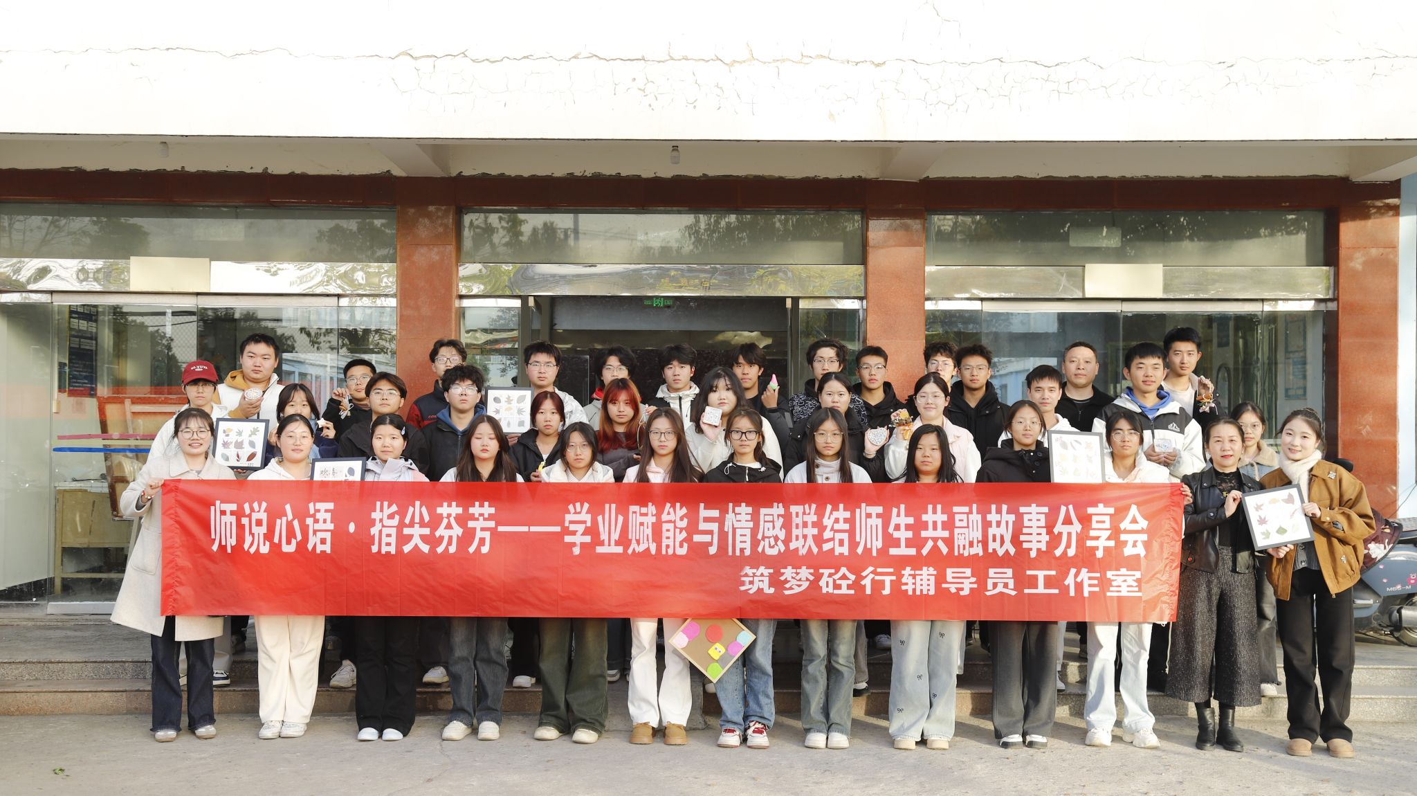 在活动的尾声,师生共同将完成的手工作品合影留念,一件件芬芳的作品成为可视化的情感纽带与心理支持信物,提醒着每一位同学,在追求学业精进的路上,学院与师长是他们坚强的后盾。现场设置的“心灵寄语墙”上也贴满了感恩与祝福的便签,形成了积极的情绪流动,持续滋养着社区的心理环境。