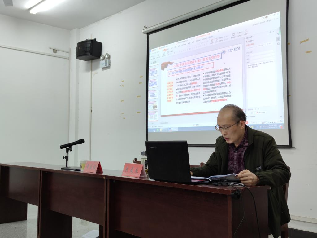 党委组织部吴友发老师则以《新时代党的思想旗帜》为主题,以《习近平谈治国理政》第三卷出版的时代背景、主要内容和学习要求三个方面进行阐述,强调认真学习贯彻习近平新时代中国特色社会主义思想是理论武装全党的重大政治优势,要凝聚起建设社会主义现代化国家新征程的磅礴力量。